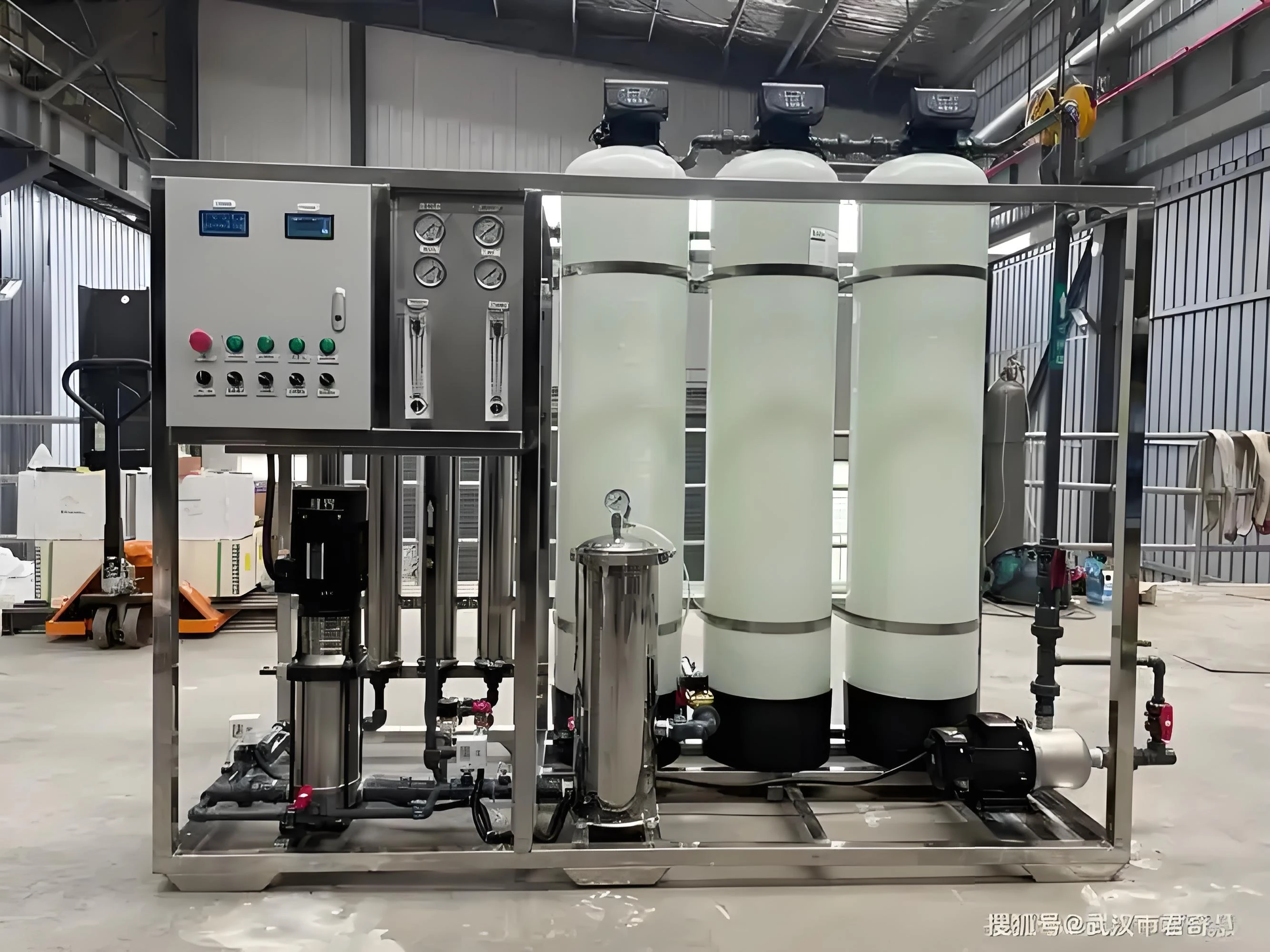广泛应用于制药、电子、食品等行业。它通过两级 RO 膜串联工艺,将普通水源层层净化,产出电导率低于 5μS/cm 的高品质纯水。