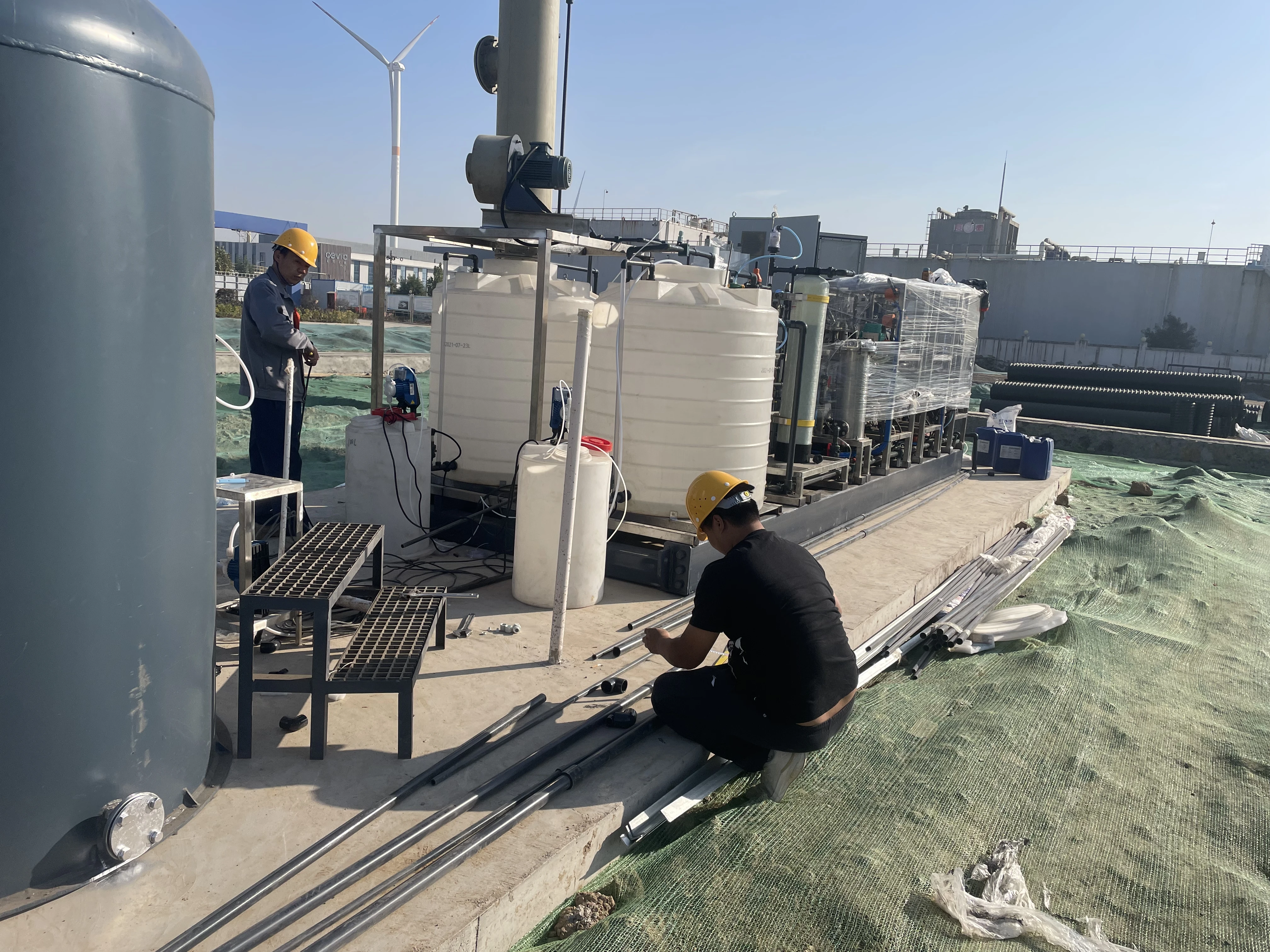 通常包括砂滤系统、保安过滤器、原水罐、加酸调节装置等,用于去除渗滤液中的大颗粒杂质、调节水质和酸碱度,保护后续的膜系统。